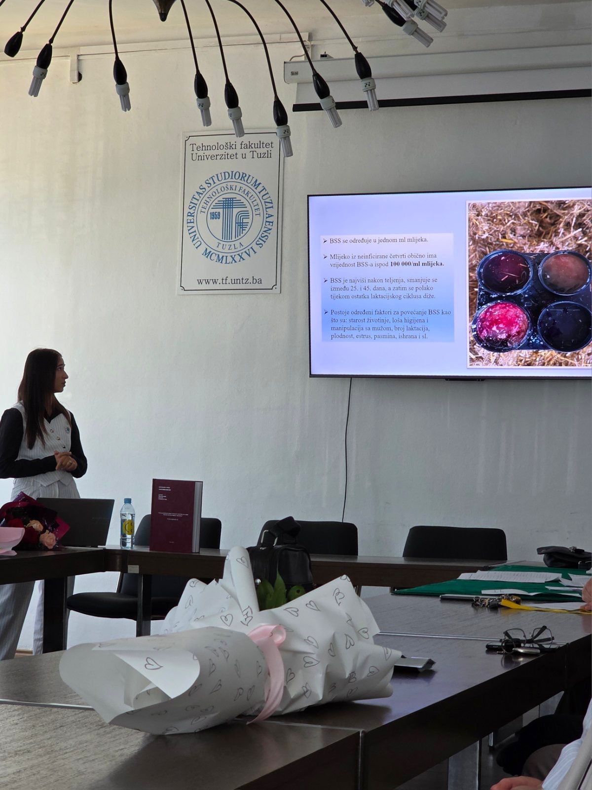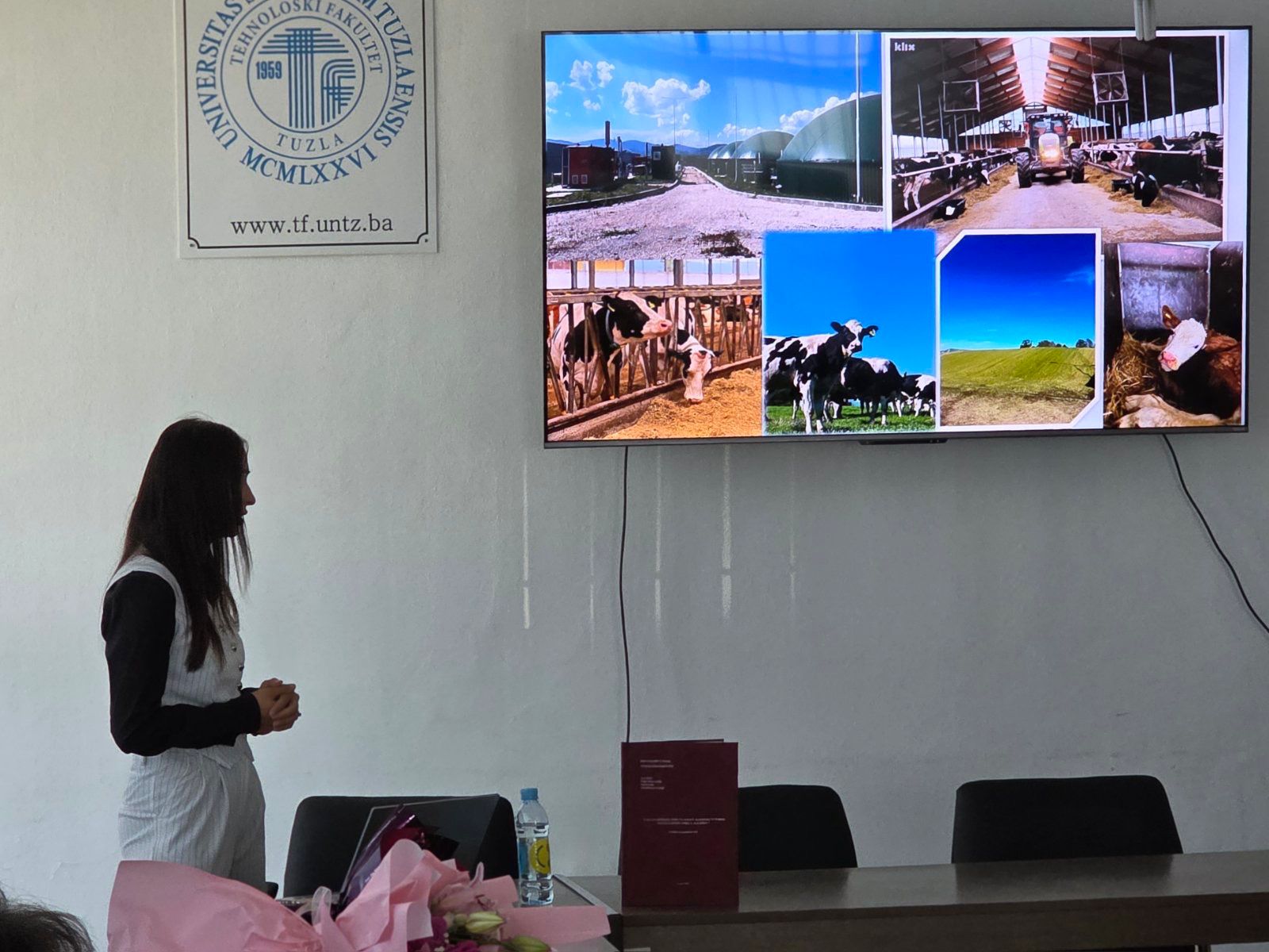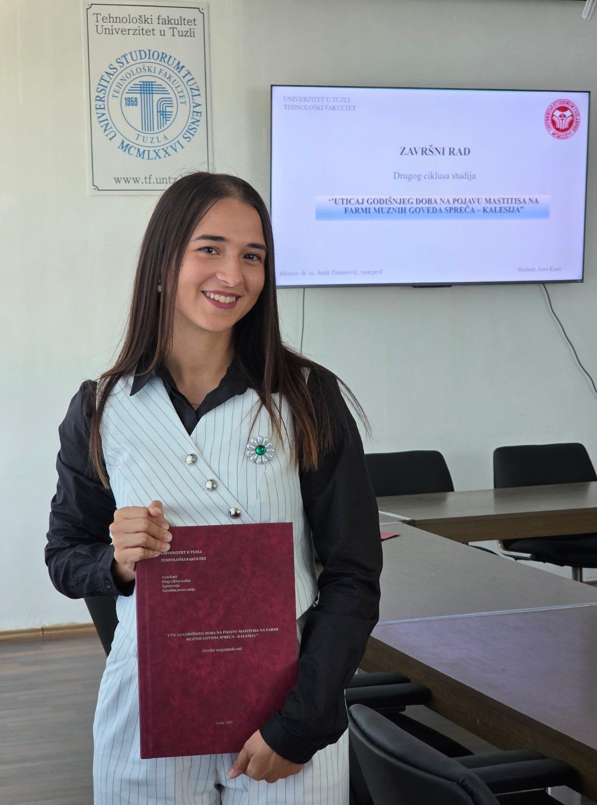 Dana 14.07.2025. godine na drugom ciklusu studija odsjeka Agronomija Tehnološkog fakulteta u Tuzli, naša studentica i kolegica Azra Karić uspješno je odbranila završni magistarski rad na temu „Uticaj godišnjeg doba na pojavu mastitisa na farmi muznih goveda Spreča – Kalesija.“ Završni magistarski rad, odbranjen je pred komisijom u sljedećem sastavu: