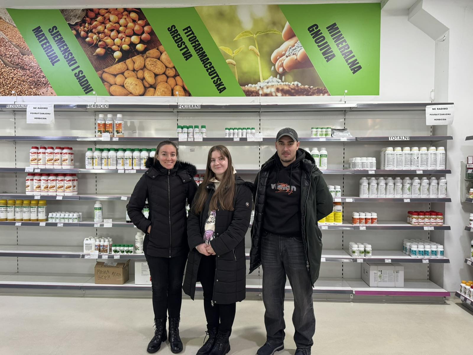 Tokom ove posjete studenti su imali priliku detaljno se upoznati s procesima nabavke, skladištenja, prodaje i pravilnog rukovanja fitofarmaceutskim sredstvima, pri čemu je poseban naglasak stavljen na optimalno vrijeme njihove primjene u poljoprivrednoj proizvodnji, kao i izazove s kojima se susreću proizvođači i distributeri u ovoj oblasti.