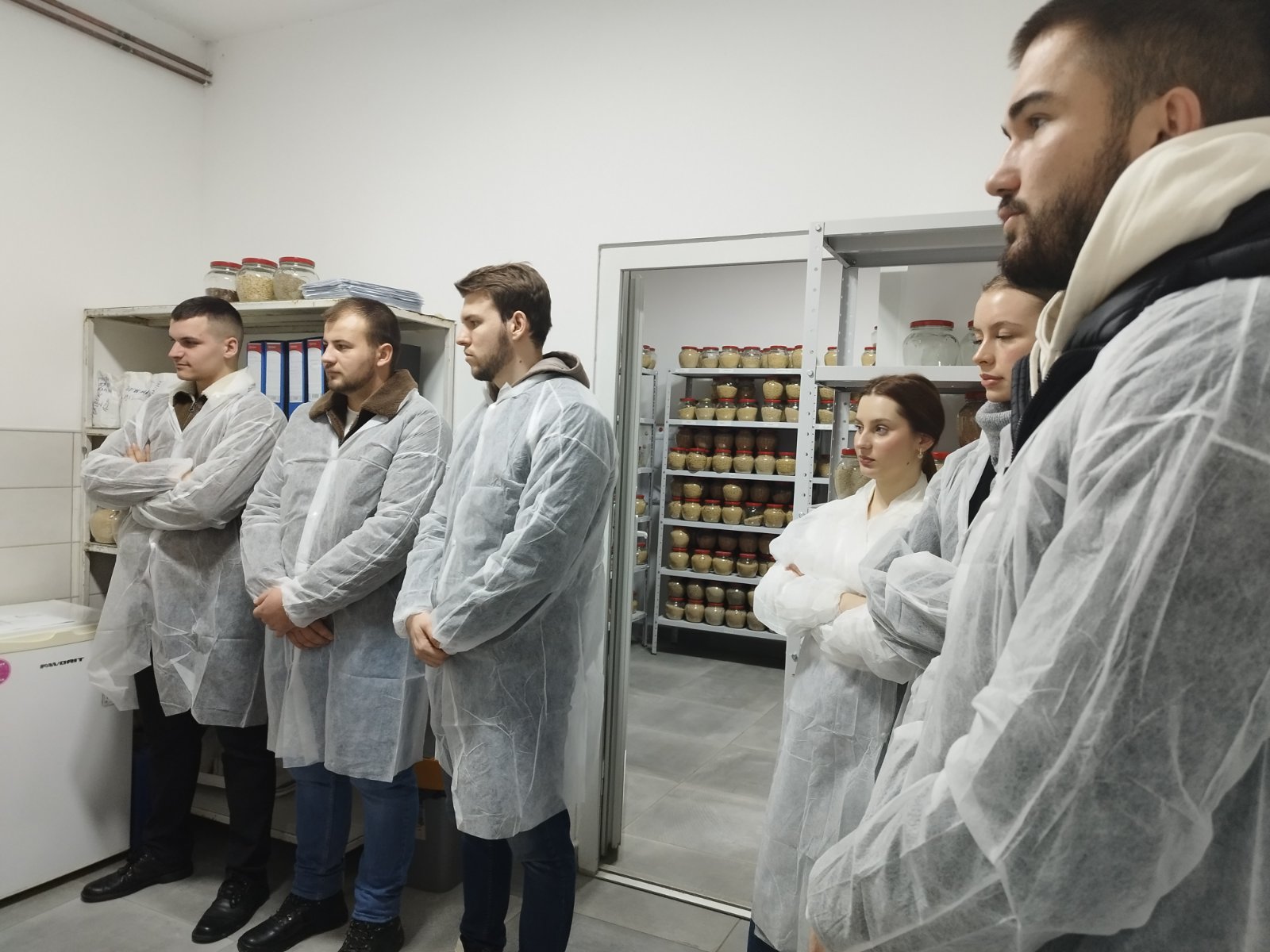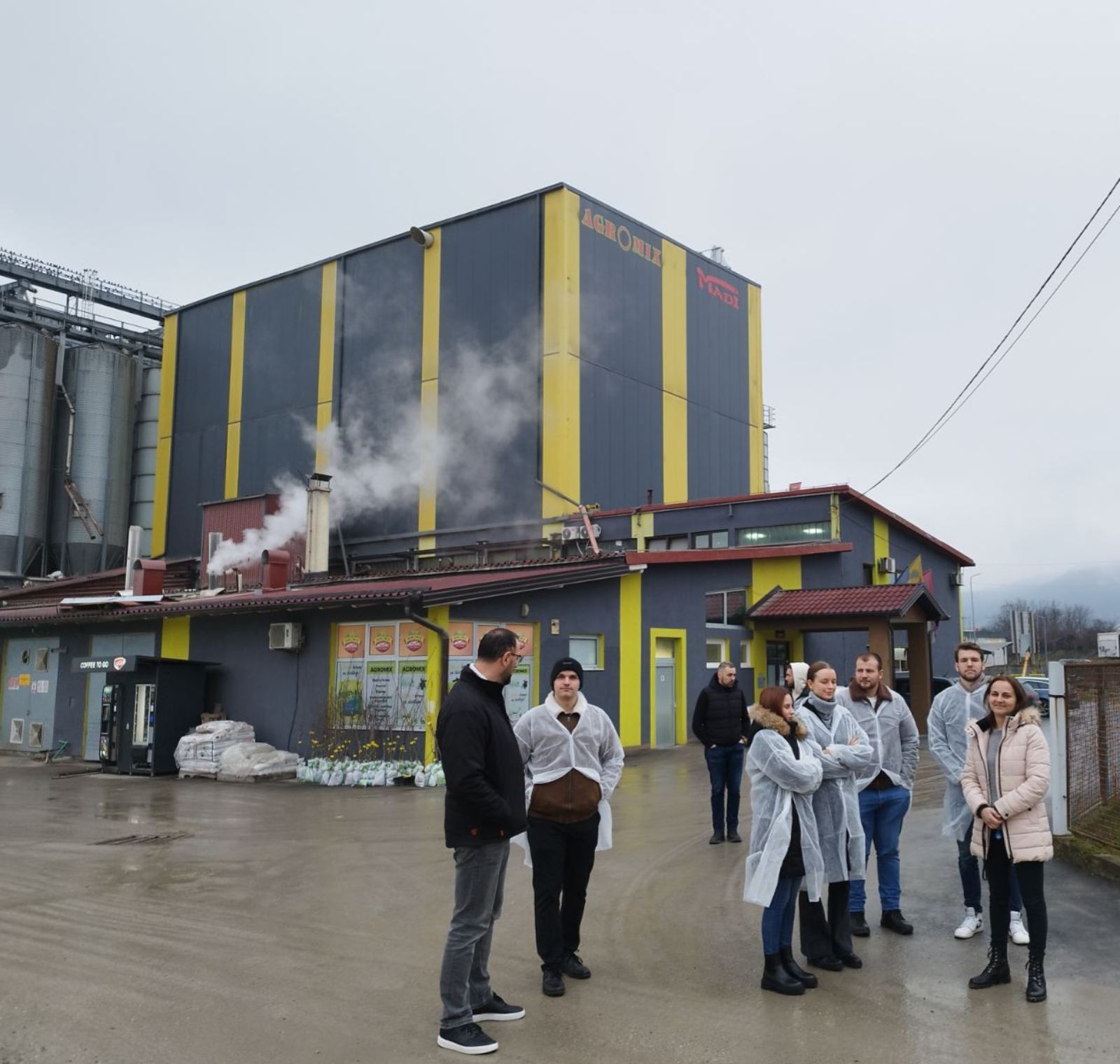 U Tvornici stočne hrane Agromix d.o.o. Doboj studenti su imali priliku vidjeti kompletan tehnološki proces proizvodnje stočne hrane, uključujući prijem i kontrolu sirovina, postupke mljevenja i miješanja, peletiranje, pakovanje, kao i skladištenje gotovih proizvoda. Posebna pažnja posvećena je sistemima kontrole kvaliteta, sljedivosti i primjeni standarda sigurnosti hrane. Kroz stručno vođeno izlaganje, studenti su se upoznali s principima formulacije obroka za različite kategorije životinja, značajem nutritivne vrijednosti i pravilnog balansiranja sastava, kao i s ulogom savremene tehnologije u efikasnoj i sigurnoj proizvodnji stočne hrane.