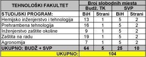 BROJ SLOBODNIH MJESTA ZA UPIS KANDIDATA PO STUDIJSKIM PROGRAMIMA, KOJI SE FINANSIRAJU IZ BUDŽETA TK ILI U KATEGORIJI STUDENATA KOJI SE SAMI FINANSIRAJU ( SVP) :