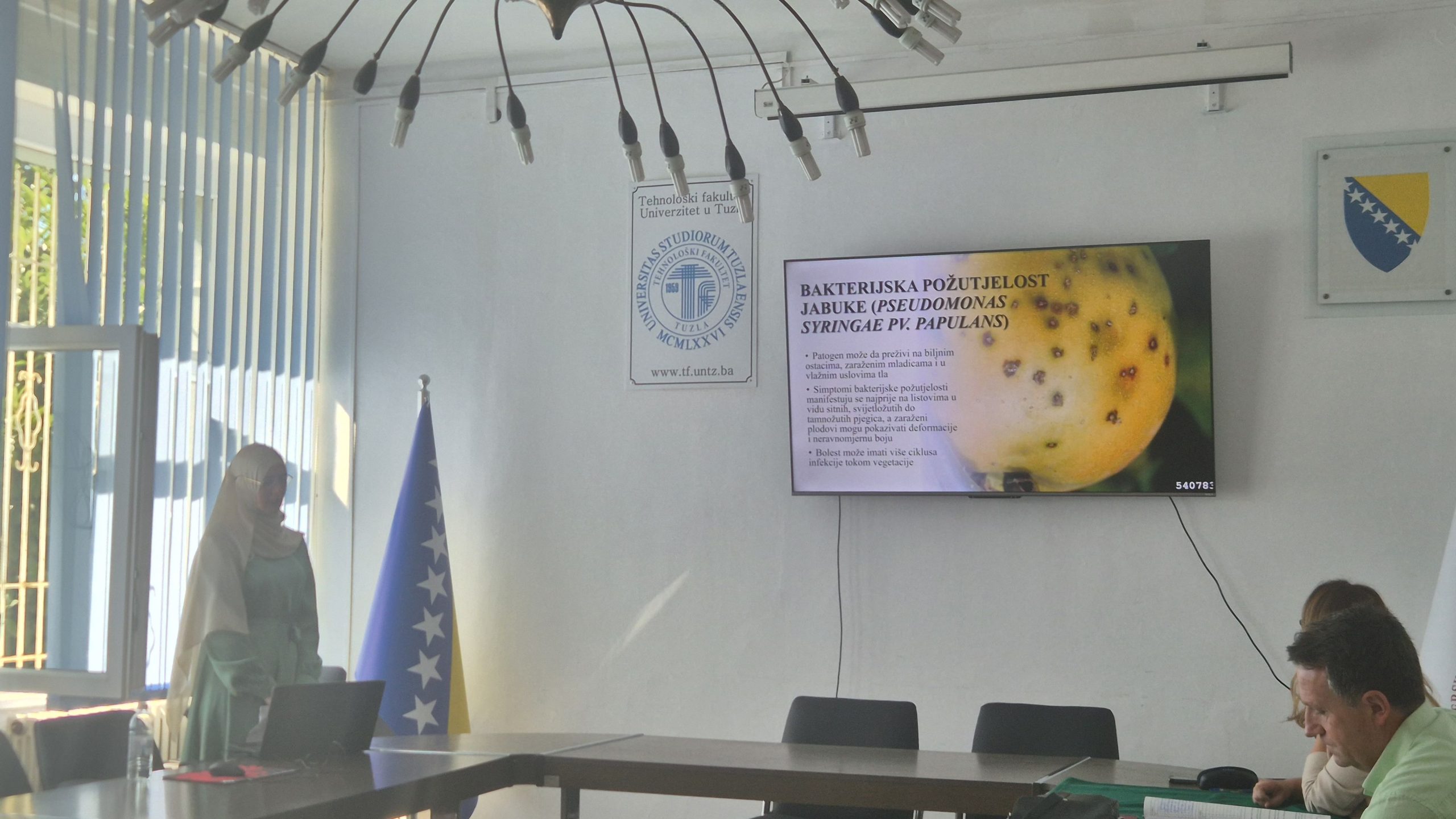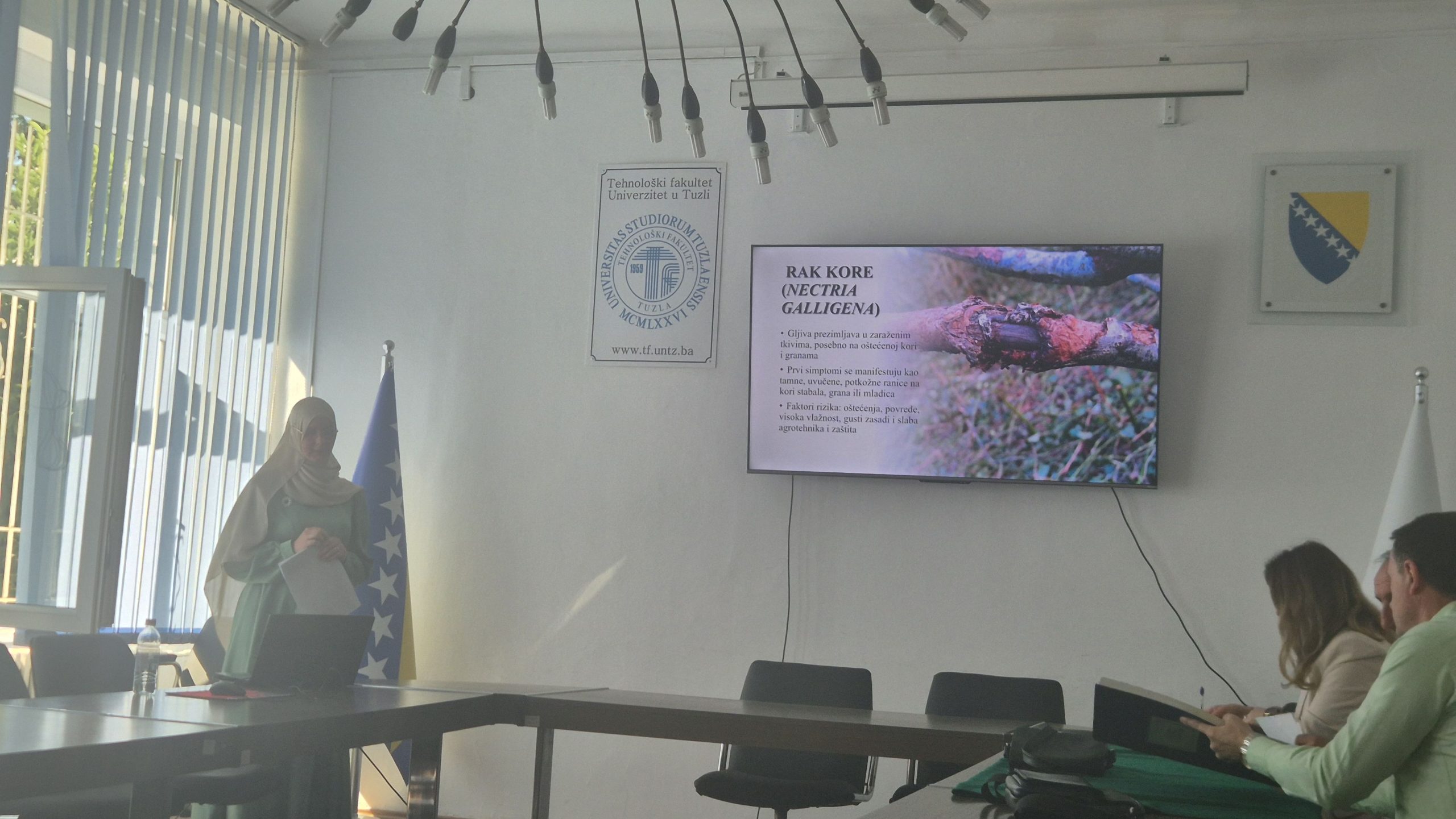 Dana 19.09.2025. godine, na studijskom programu Agronomija (usmjerenje Biljna proizvodnja), naša kolegica Maida Đozić uspješno je odbranila završni rad prvog ciklusa studija. Kolegica Maida Đozić je odbranila rad pod nazivom “Značajnije bolesti jabučastog i koštičavog voća”, pred Komisijom za odbranu u sljedećem sastavu:
