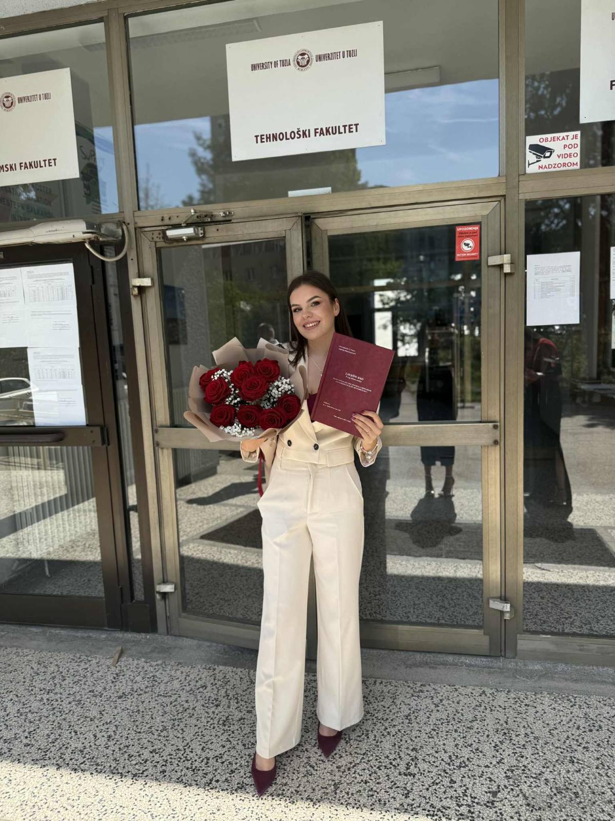 Dana 05.09.2025.godine, na studijskom programu Prehrambena tehnologija (usmjerenje Prehrambena tehnologija), naša kolegica Nejra Peštalić uspješno je odbranila završni rad prvog ciklusa studija.